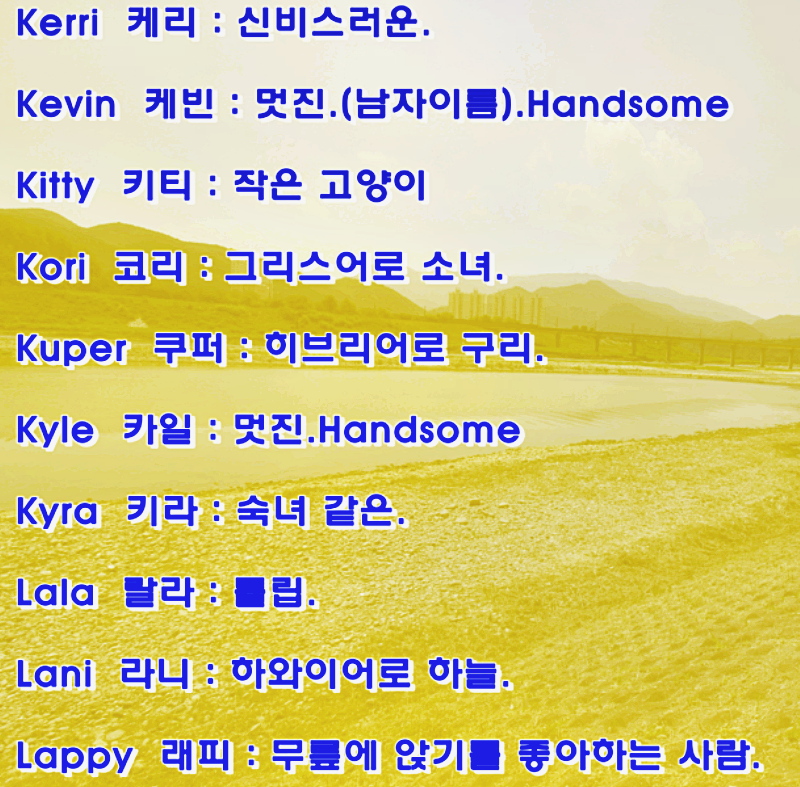 저는 순 한글 닉네님을 사용할 때도 있지만 사람들에게 뭔가 있어보이는 느낌을 주고 싶을 때 사용하는 영어 닉네임 또한 가지고 있답니다. 그럼 꼭 한 번쯤 물어보더라구요. 닉네임이 예쁘다고, 무슨 의미를 가지고 있는 것이냐고. 그럴 때면 괜히 혼자서 뿌듯한 기분 좋은 느낌이 들더라구요. ㅎㅎ